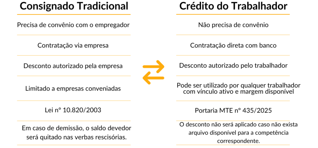 Com a criação do Crédito do Trabalhador, pela Portaria MTE nº 435/2025, ampliou-se a autonomia do empregado, que passou a poder contratar o crédito diretamente com a instituição financeira de sua escolha, sem a necessidade de intermediação do empregador.