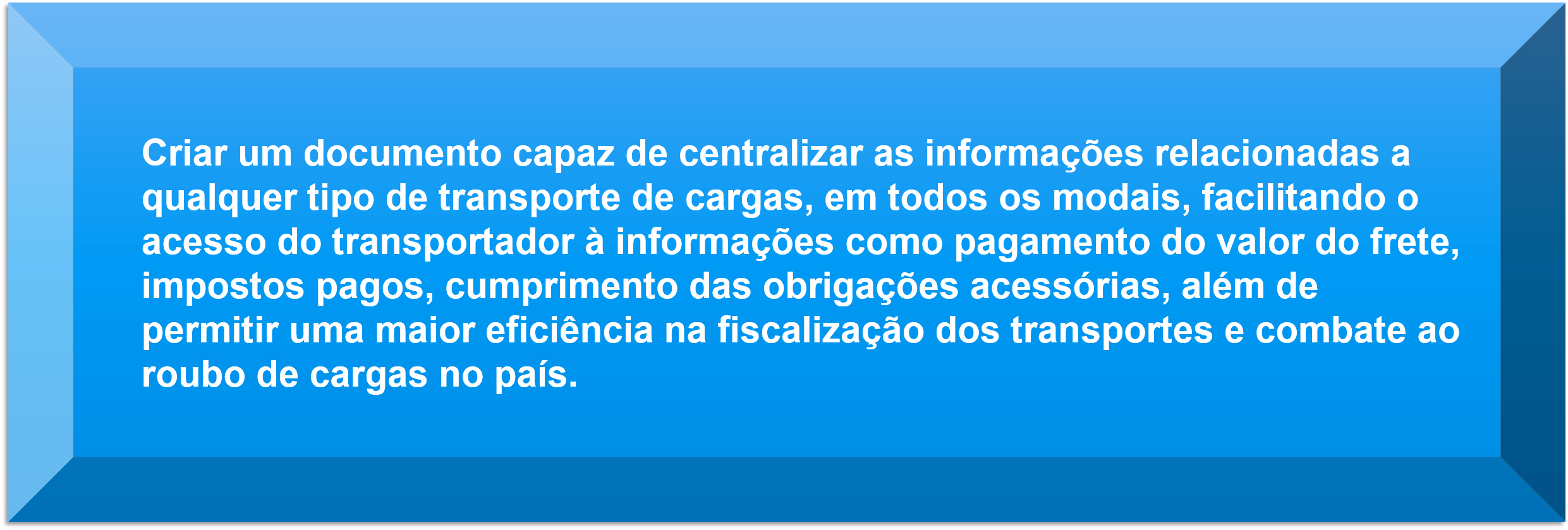 O novo documento se aplica a todos os modais, mas inicialmente a implantação se dará apenas ao MODAL RODOVIÁRIO de forma SEGMENTADA por TIPO de CARGA transportada.