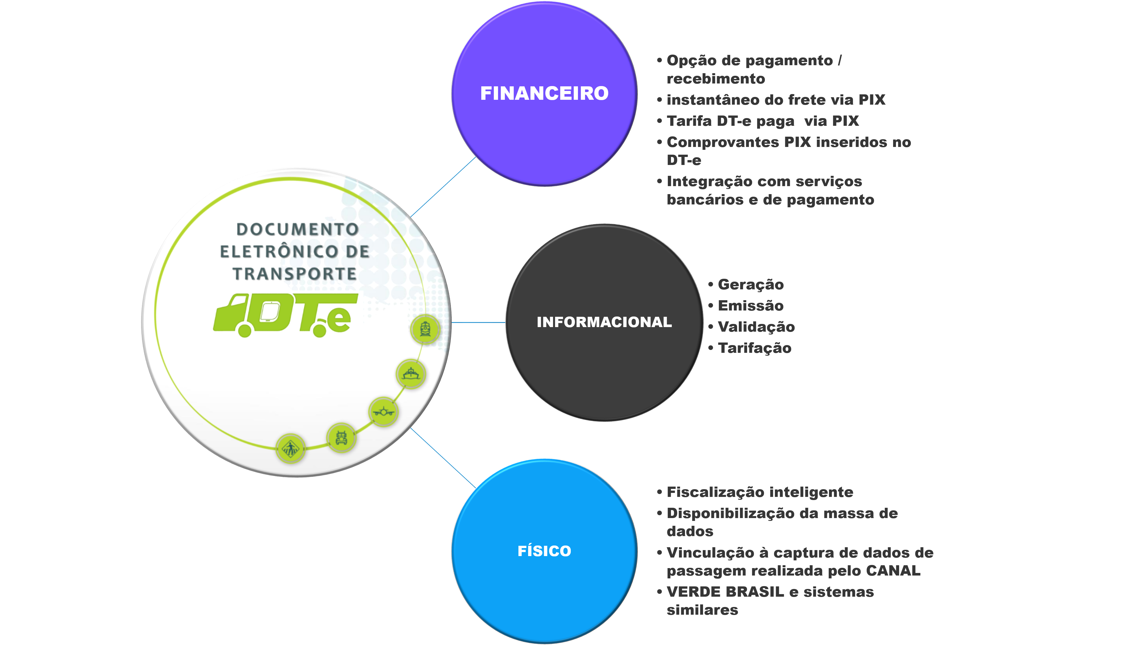 O Projeto DT-e visa unificar toda a operação de transportes, desde o início da prestação de serviços até a chegada da mercadoria no destinatário, conciliando os pagamentos e integrando a fiscalização do transporte. Assim, todos os registros da operação de prestação de transportes ficaria centralizada em um único local, de forma que todos os envolvidos possam consultar toda documentação envolvida na operação.