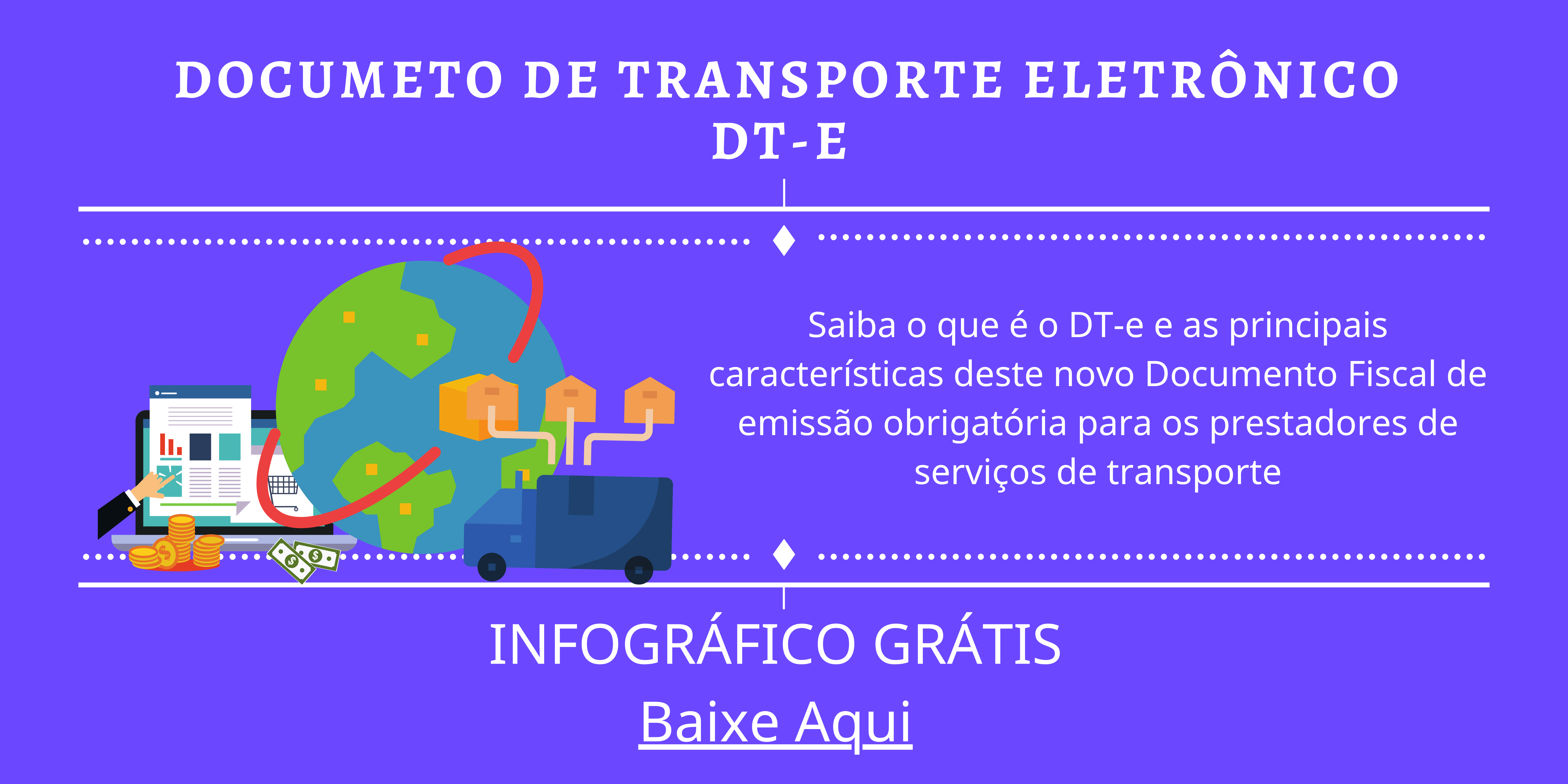 Documento Eletrônico de Transporte (DT-e) é o documento emitido e armazenado eletronicamente, de existência apenas digital, para vincular os documentos logísticos utilizados na operação e/ou prestação, à unidade de carga utilizada no transporte.