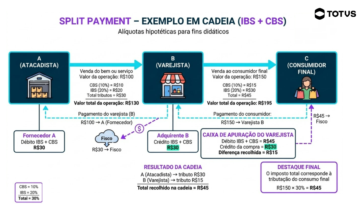- Já os valores extintos por split payment ou por recolhimento pelo adquirente permanecem vinculados à operação específica, sendo considerados diretamente na formação do saldo apurado.